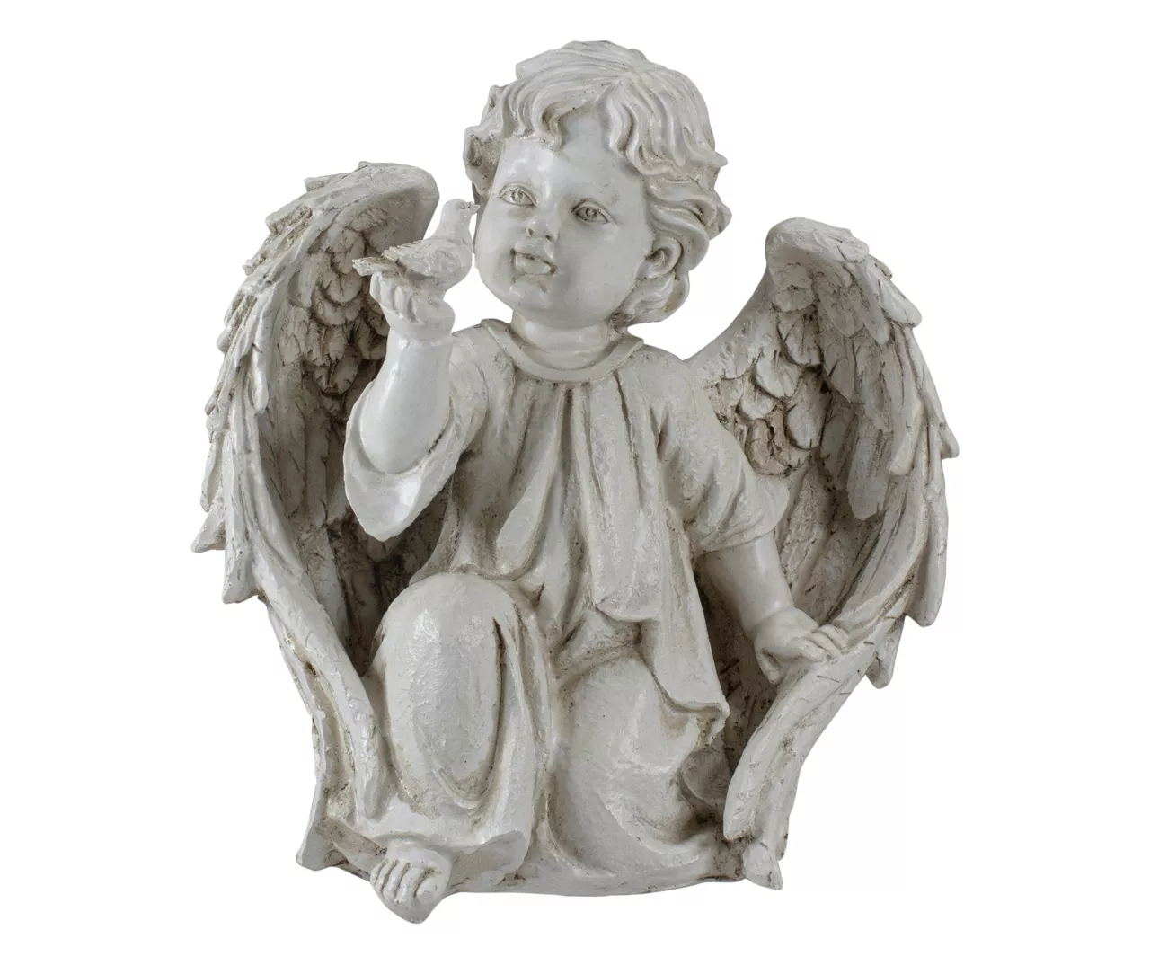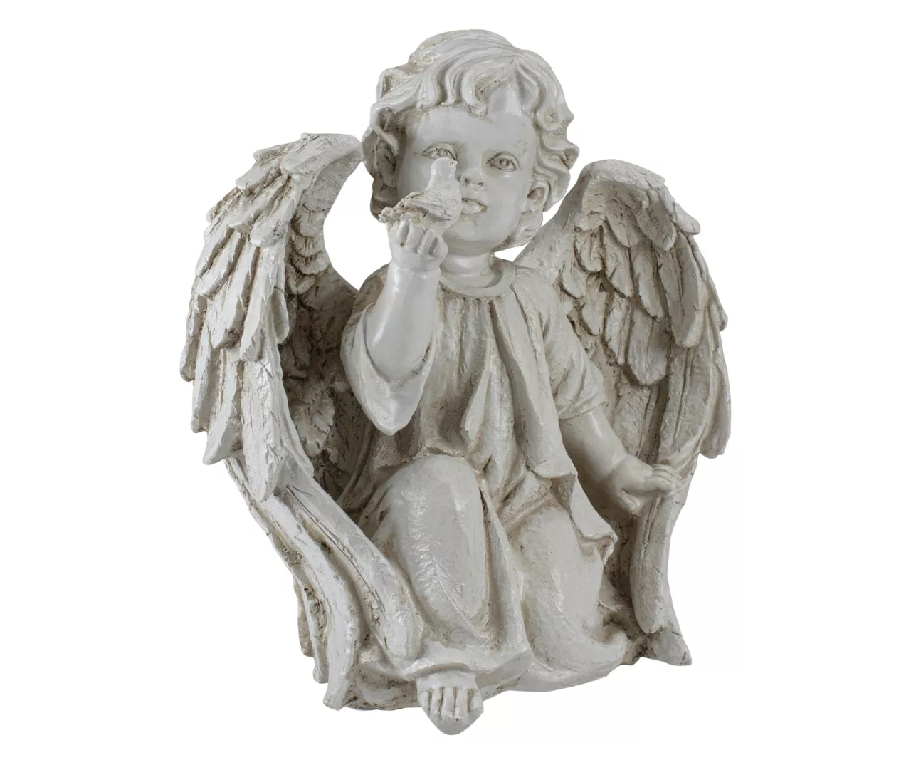 - Sculpted with a bended knee angel holding a small bird