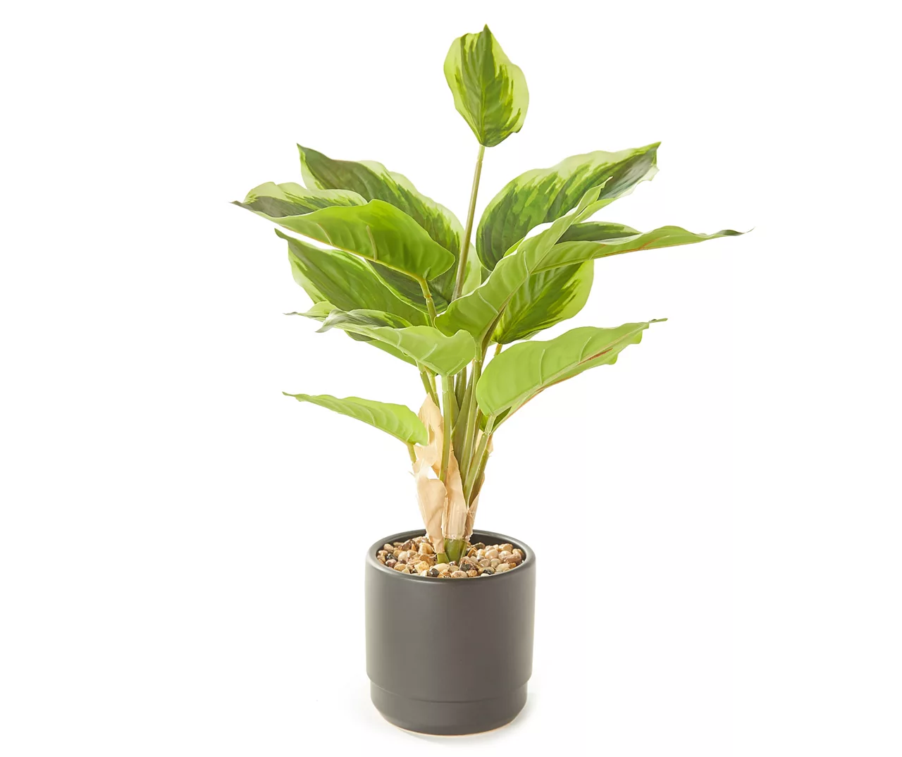 Ensure your home looks its very best by adding this beautiful artificial greenery to your décor. Resting in a lovely black ceramic pot, this realistic plant “grows” from a bed of decorative rock. Showcase this piece on a mantel or display on an entryway table for an added touch of nature to your home.