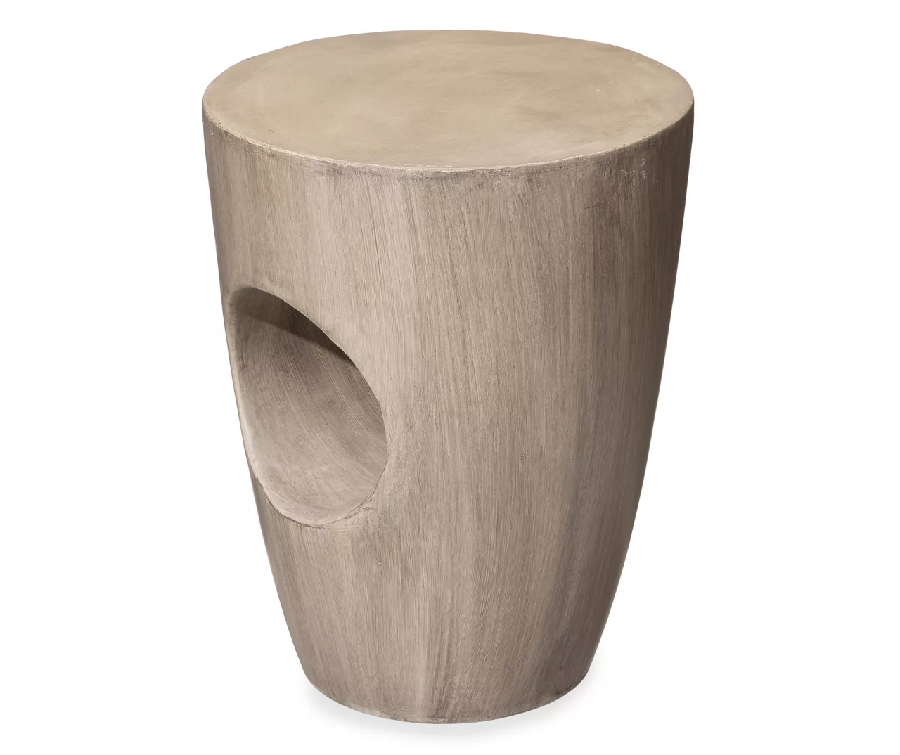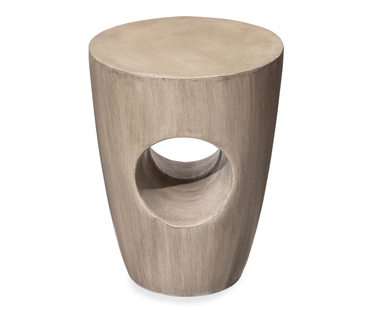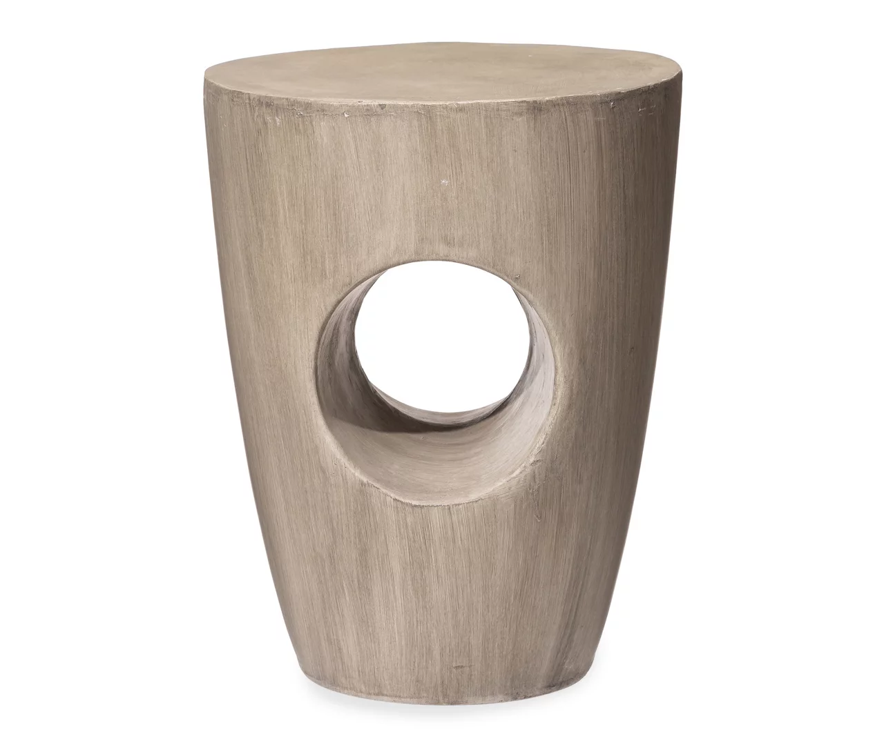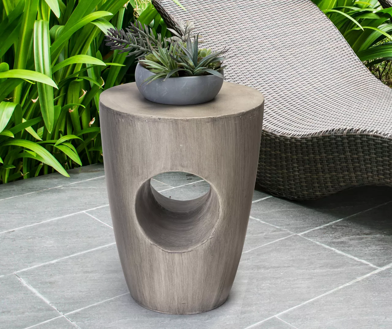 Accent your home or outdoor space in modern, minimalist design using this accent table. The round design features an imitation concrete look with a hole in the center for added interest. Offering a flat surface for showcasing greenery, snacks or décor, this piece is a stunning addition to a living space, patio or garden.
