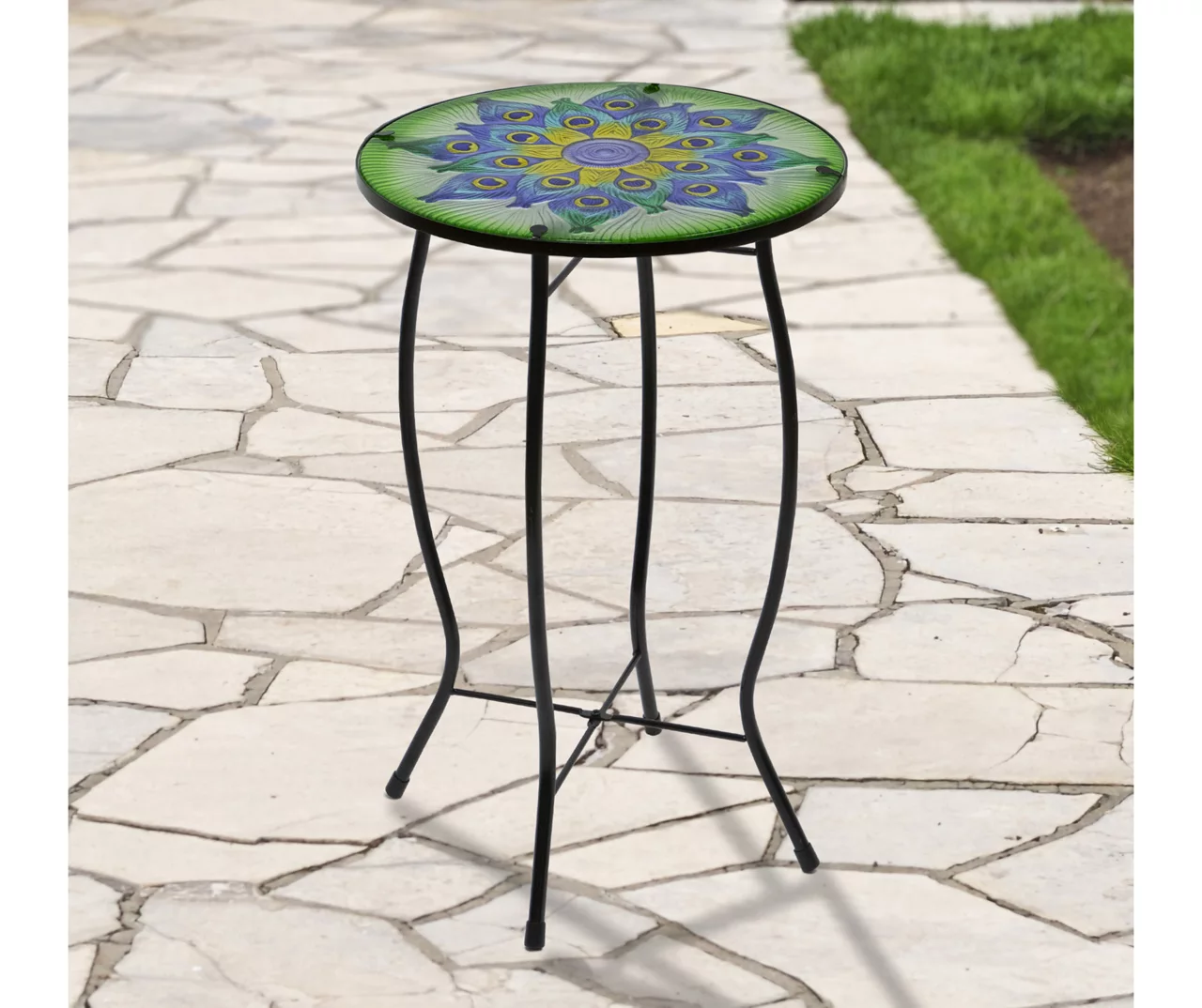 This garden table will be your best patio decoration. The floral peacock design with blue and green feathers will add a pop of color to your greenery. Place down a light snack or your cell phone for easy grabbing. It can even be a great stand for a small plant.