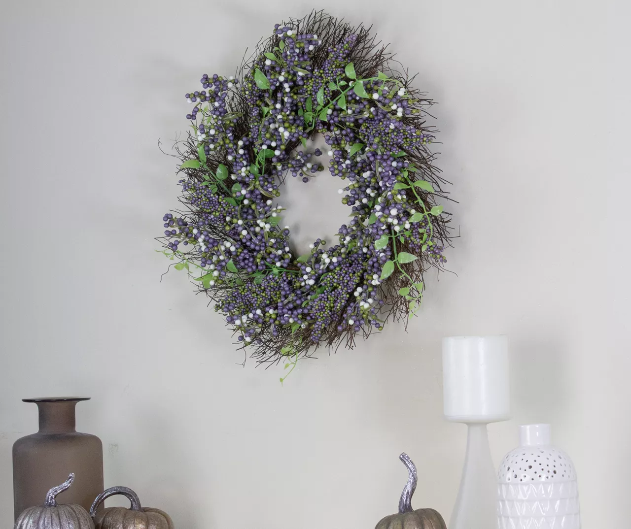 Create a festive touch inspired by nature in your home with this beautiful wreath. Designed with a circular grapevine twig backing, it captures the essence of the outdoors with charming artificial berries surrounded by green leaves. Perfect for your Thanksgiving holiday but is also versatile to welcome the spring season, it’s a wonderful addition to a wall, door or displayed above a mantel.