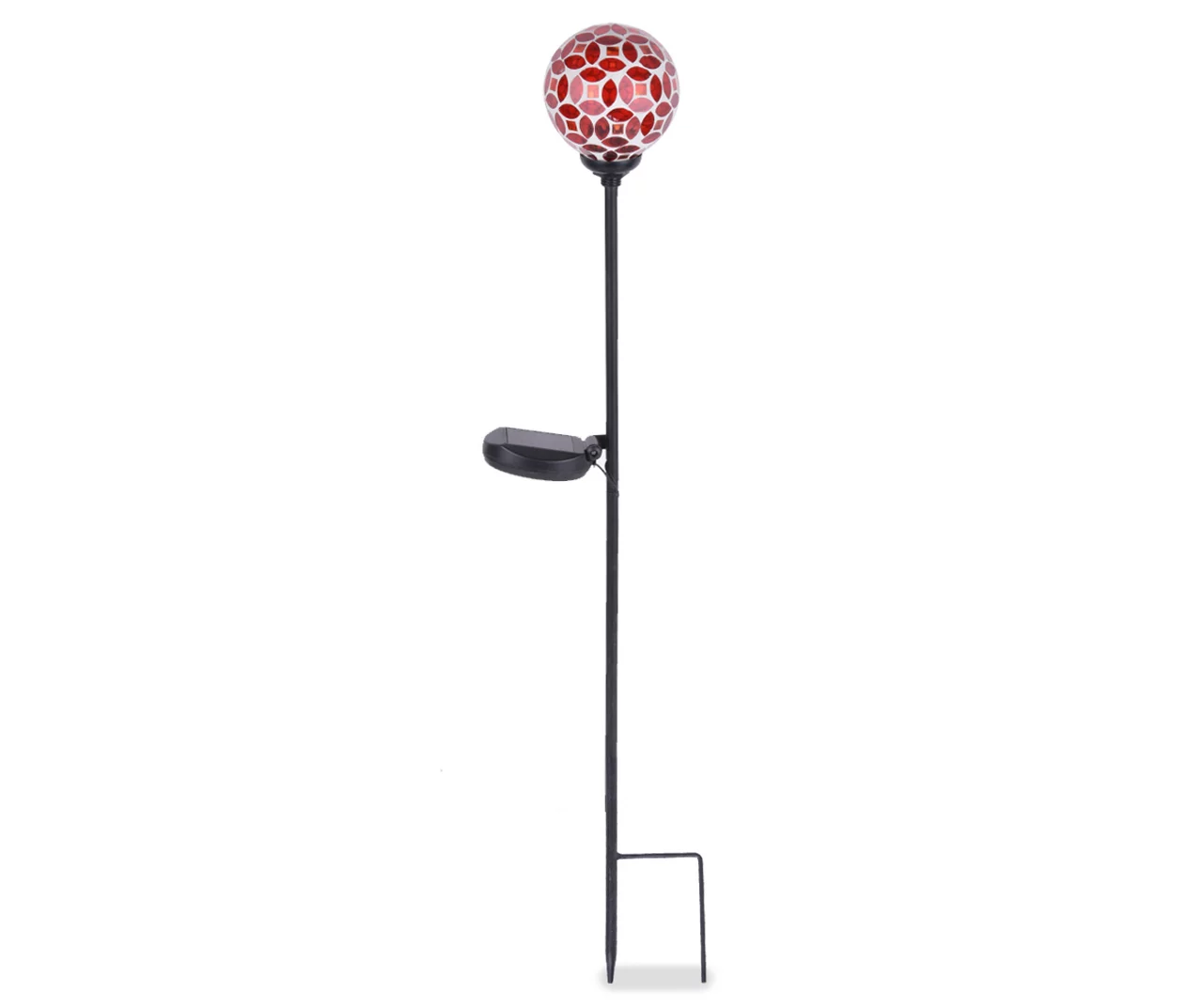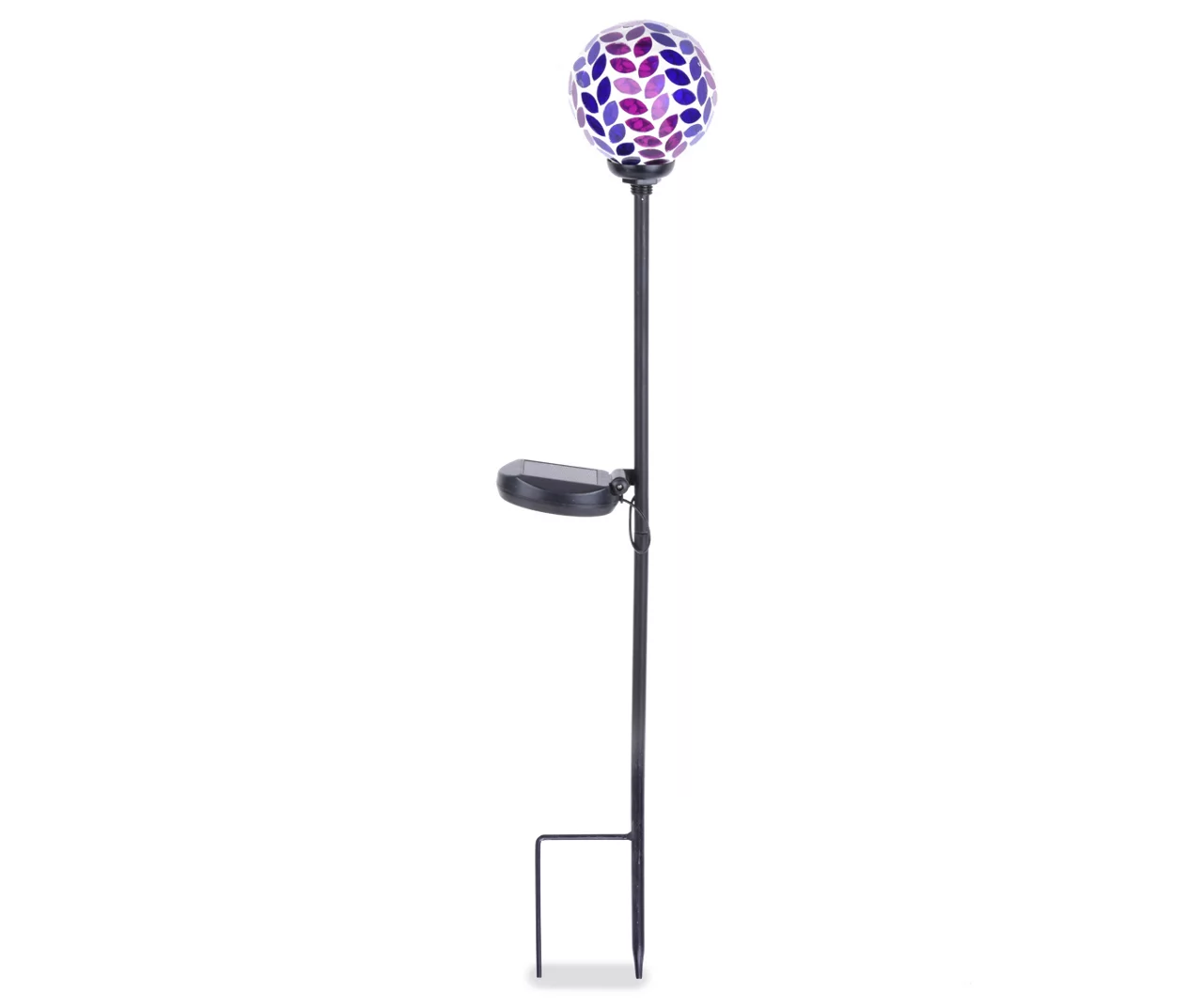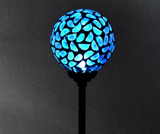 With colorful mosaic glass spheres, these LED garden stakes radiate an artful, almost kaleidoscopic, display. Powered with solar energy, they will automatically glow at dusk — no cords or off/on switches needed. Their iron ends stick in the ground or grass so they’ll remain steadily upright. Plant yours in flowerbeds, along pathways or in landscaping.