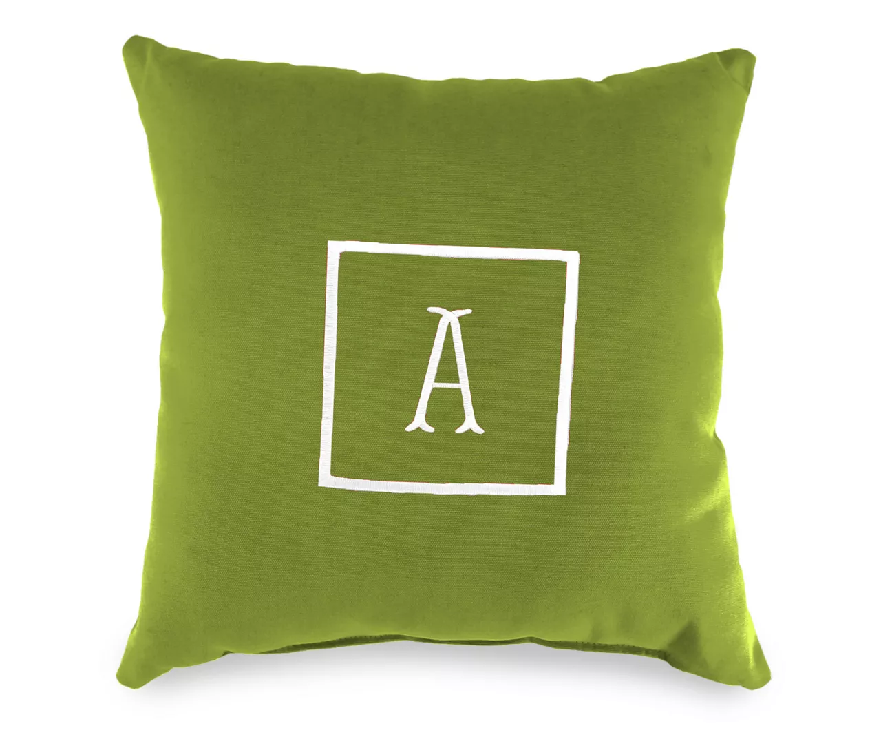 - Embroidered center letter with square edging