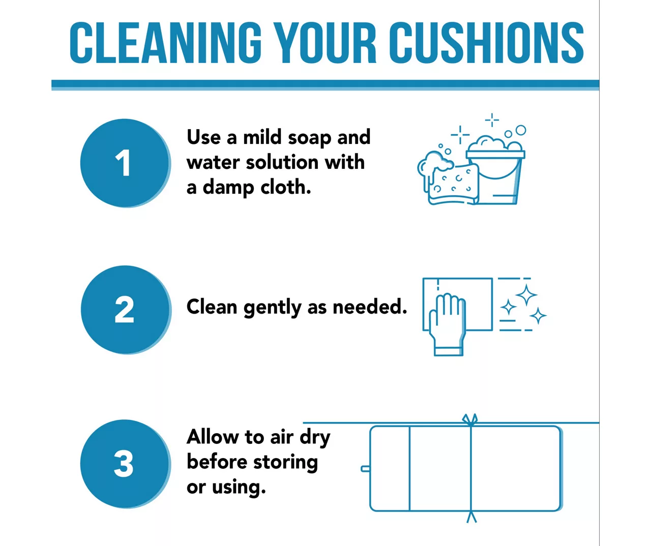 - Hanger loop is attached to the cushion to allow convenient storage in a cool, dry place
