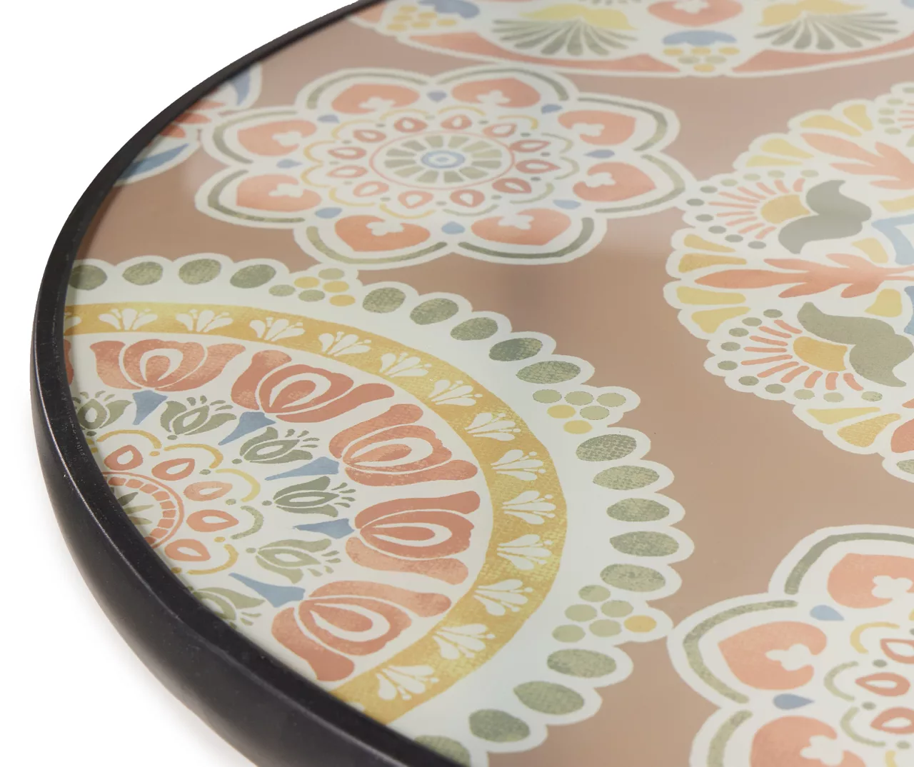 When the weather is warm and the patio beckons, this table from Real Living is ready to bring modern boho flair and a sturdy surface to your outdoor relaxation. The tempered glass top features a medallion pattern in earthen hues, and the frame folds easily for compact storage when not in use.