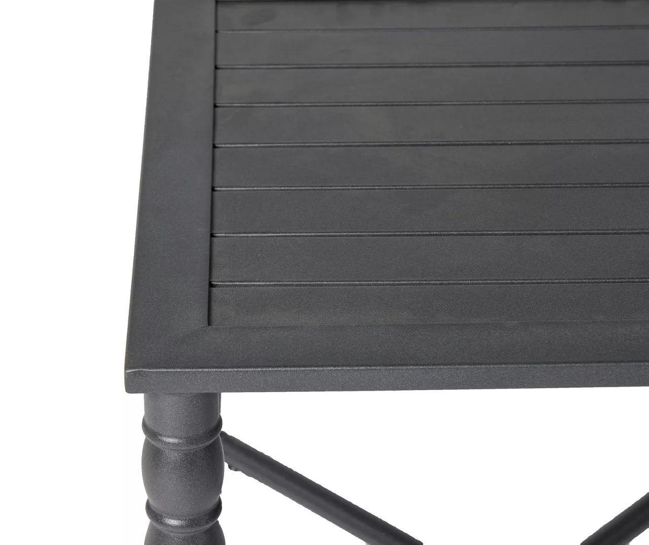 - Square slat-like tabletop paired with decorative turned style legs