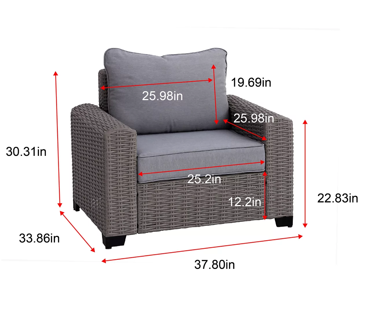 - Material: Steel 48%,Cushion 24 %,Resin Wicker 28%