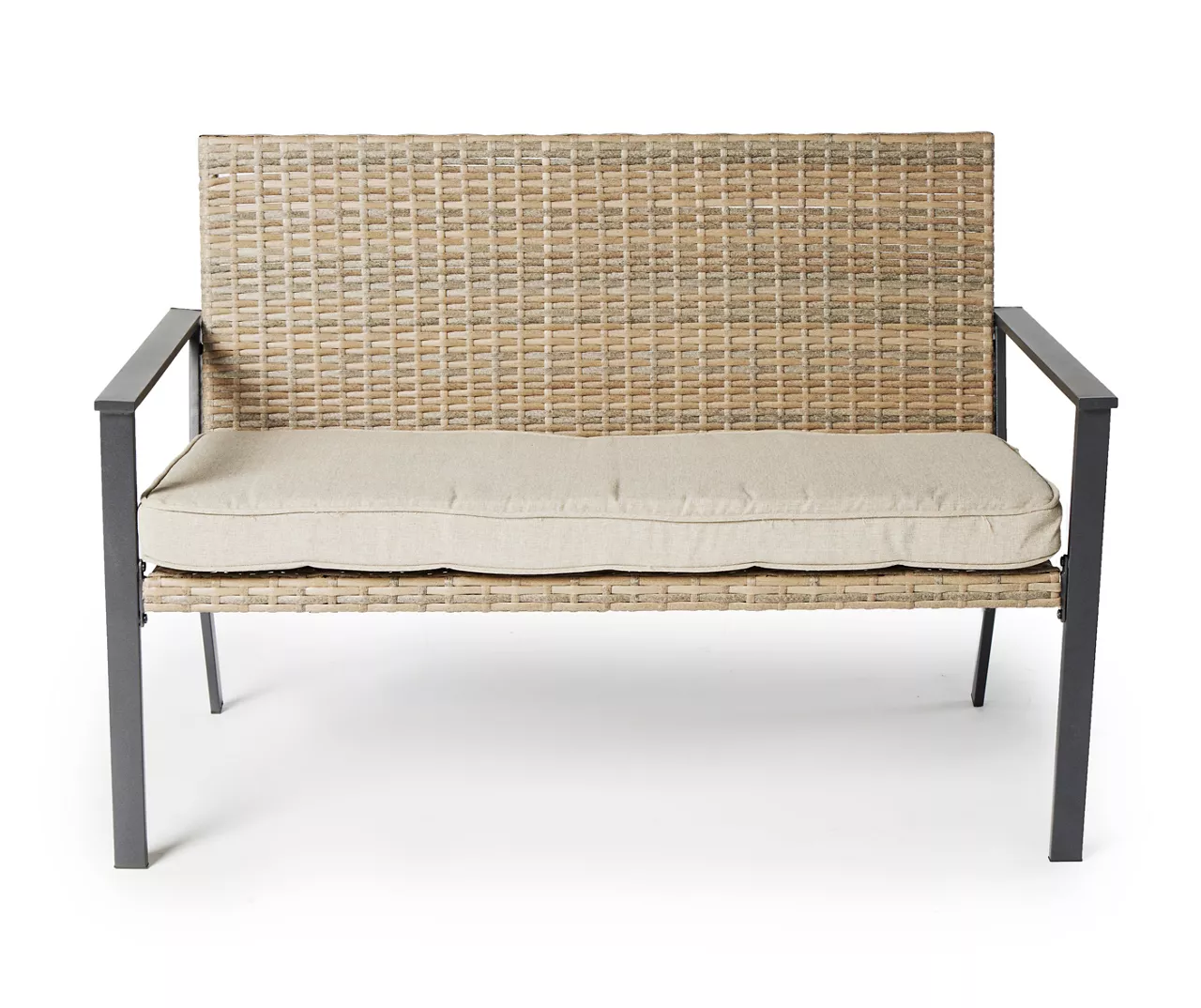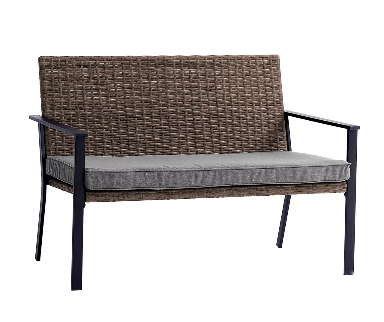 The Yorktown bench from Broyhill brings cozy seating to your favorite outdoor spot. The classic profile features a powder-coated galvanize steel frame for long-lasting beauty as handwoven all-weather wicker covers the seat base and backrest. Complete with an oversize deep seating cushion made from fade-resistant polyester, this bench is a fantastic addition to a patio, deck or backyard.