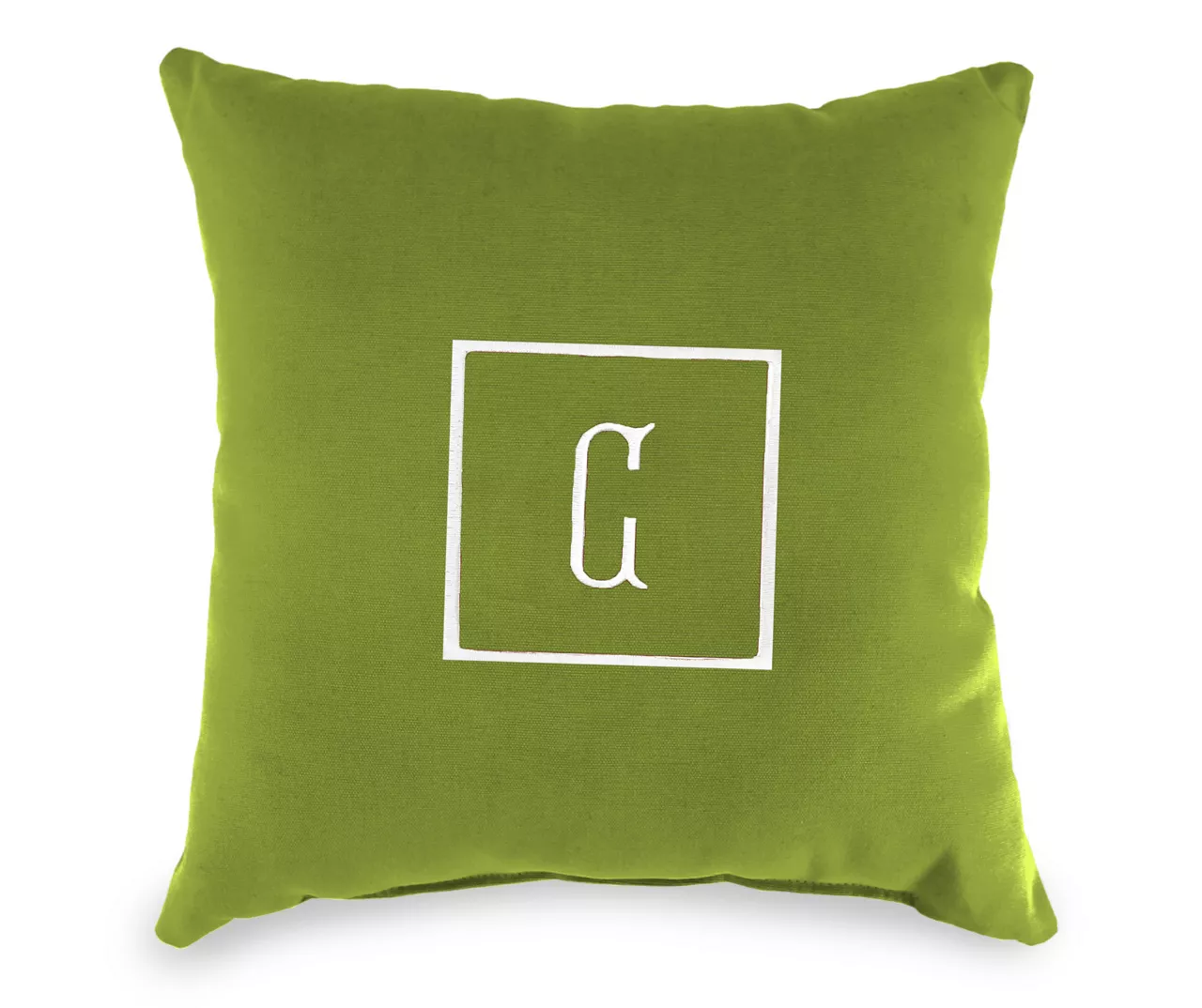 - Embroidered center letter with square edging