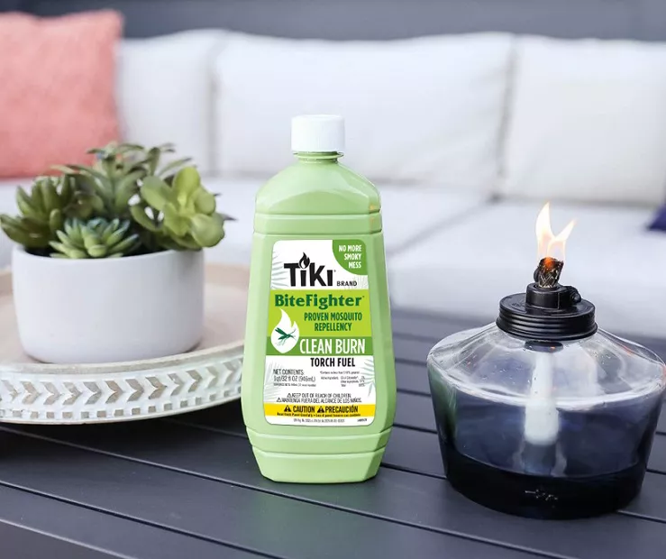 TIKI Clean Burn BiteFighter Torch Fuel is the ultimate torch fuel offering proven mosquito repellency with dramatically less soot and smoke than traditional torch fuels. A cleaner alternative to petroleum-based torch fuels, this torch fuel is 85% plant based. Stay outside longer with family and friends, but keep away uninvited guests who buzz and bite. Ideal for use with all TIKI Brand torches and table torches.