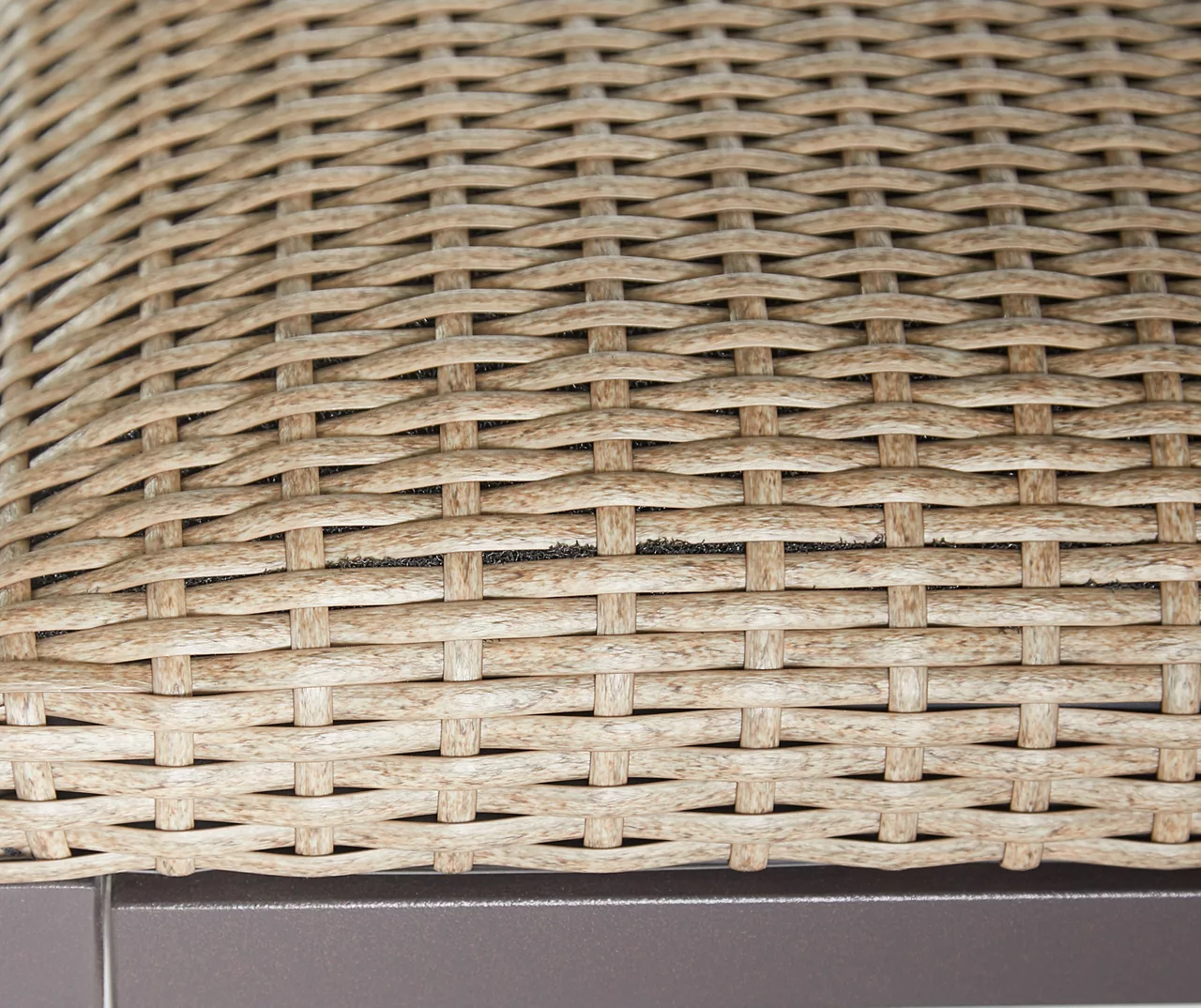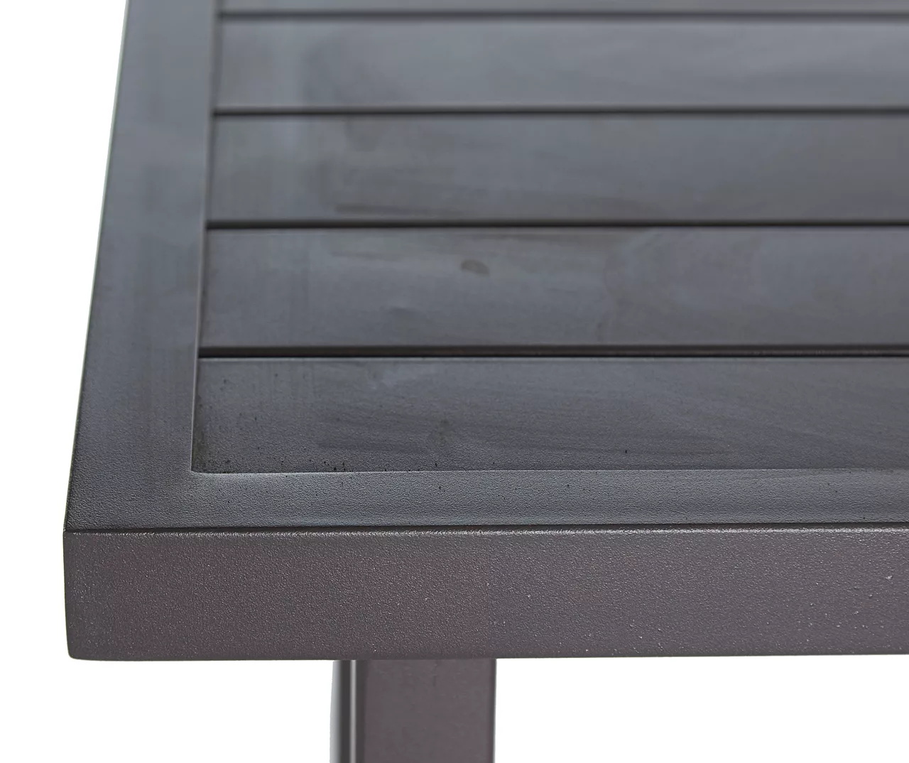 Turn any outdoor space into the perfect spot for get-togethers with the Cobblestone Lane bar table set. A slatted steel table is perfect for snacks, drinks and more as you gather with friends and loved ones on the four stylish bar chairs made with all-weather wicker seats. This seating set will make your home the go-to for any future outdoor hangouts on the patio or deck.