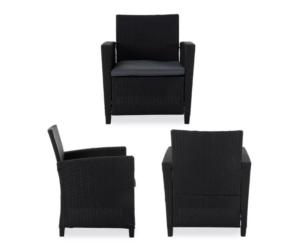 - Wrapped in weather resistant black resin wicker