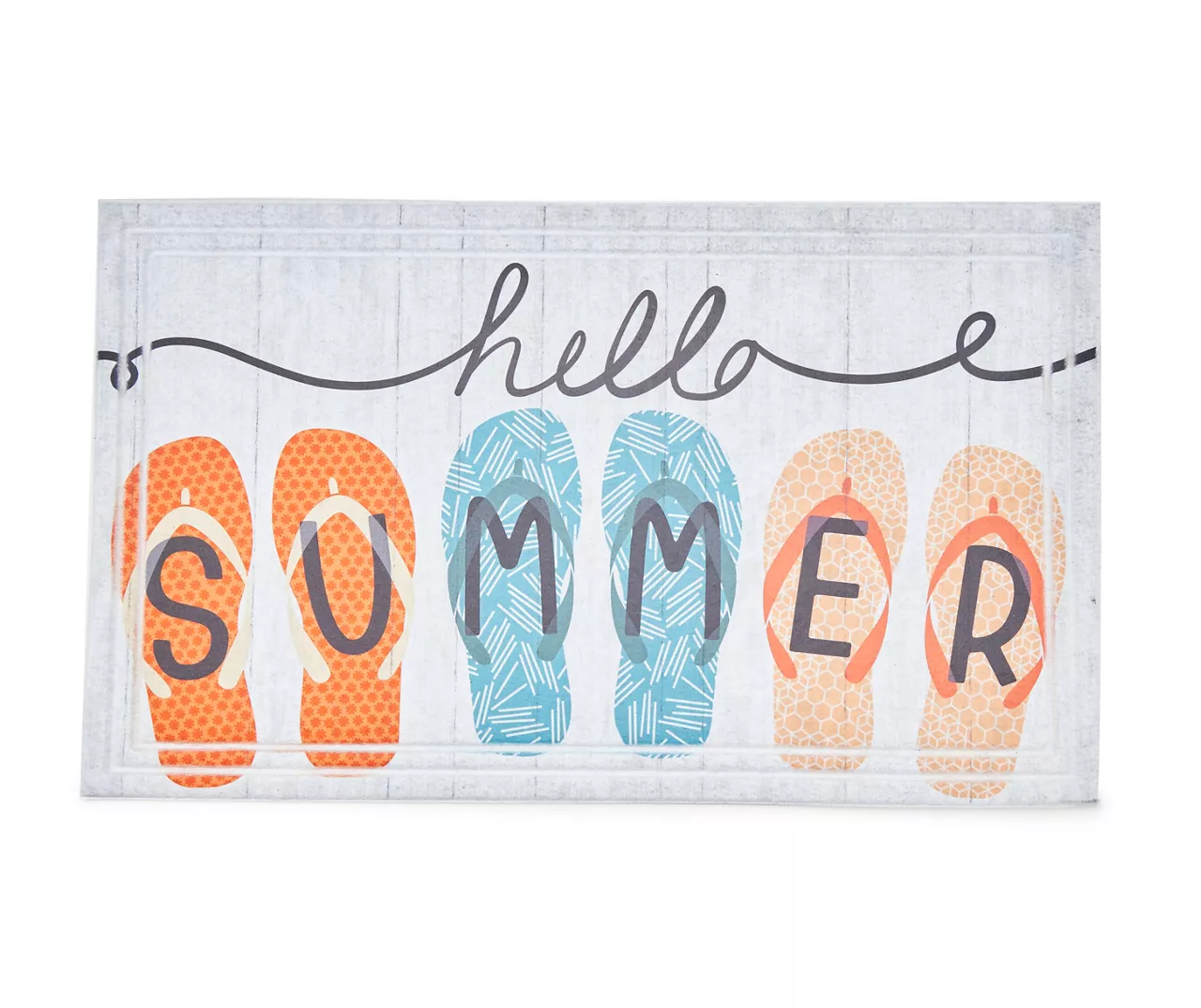 Greet the season in style with the hospitality of this doormat defined by a fun flip-flop design. The sturdy crumb rubber design helps remove dirt and debris from shoes for cleaner floors and entryways.