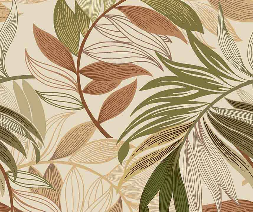 - Pretty tan Euro-style outdoor chair cushion with neutral red, green and yellow leaves
