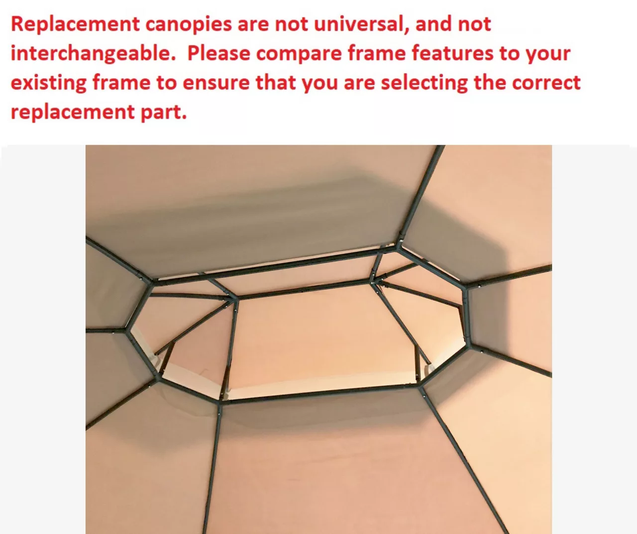 - This replacement canopy top cover will not fit any other gazebo model