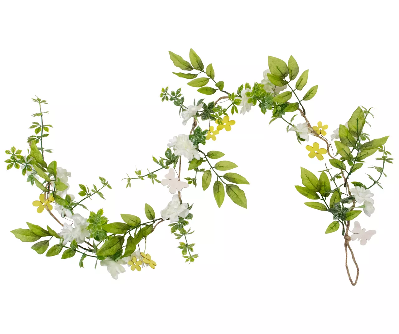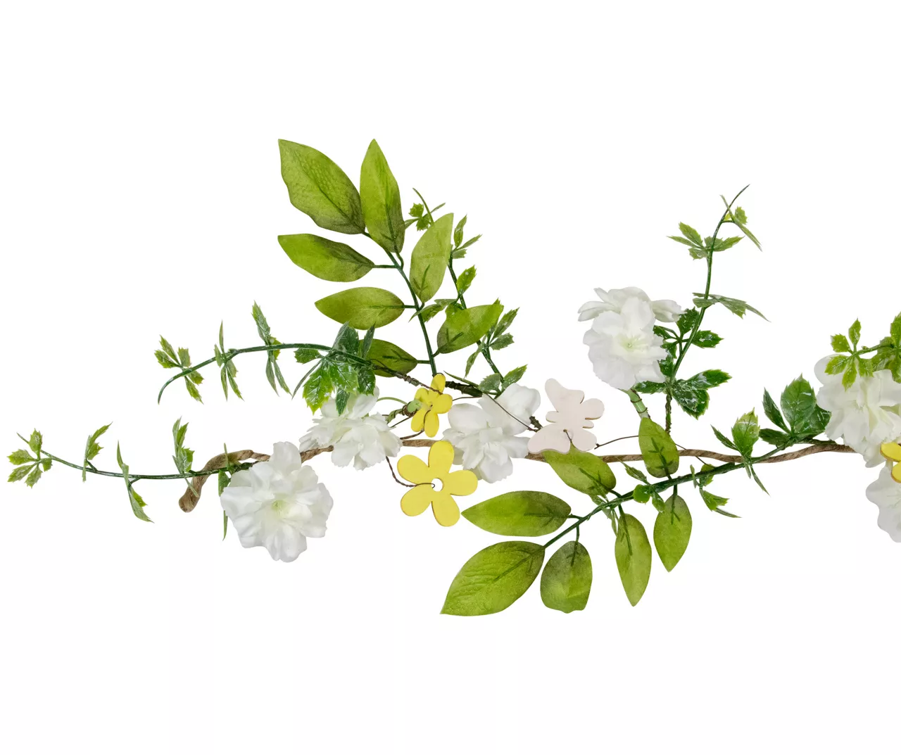 Brighten up your mantelpiece by adding this floral garland to your spring dĆ©cor. Featuring small white artificial silk flowers accented by yellow flower cutouts, it will surely add pops of color anywhere it is placed. It’s a stunning seasonal addition to a living room, entryway and more.