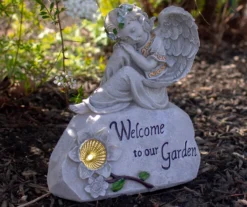 This fabulous garden statue set is sure to make your guests intrigued with its charismatic looks. Exceptionally breath-taking embellished with dazzling shades, each cherub angel statue is seen playing an instrument onto of a round pedestal. This two-piece statuary set is a wonderful addition to a patio, garden or yard.