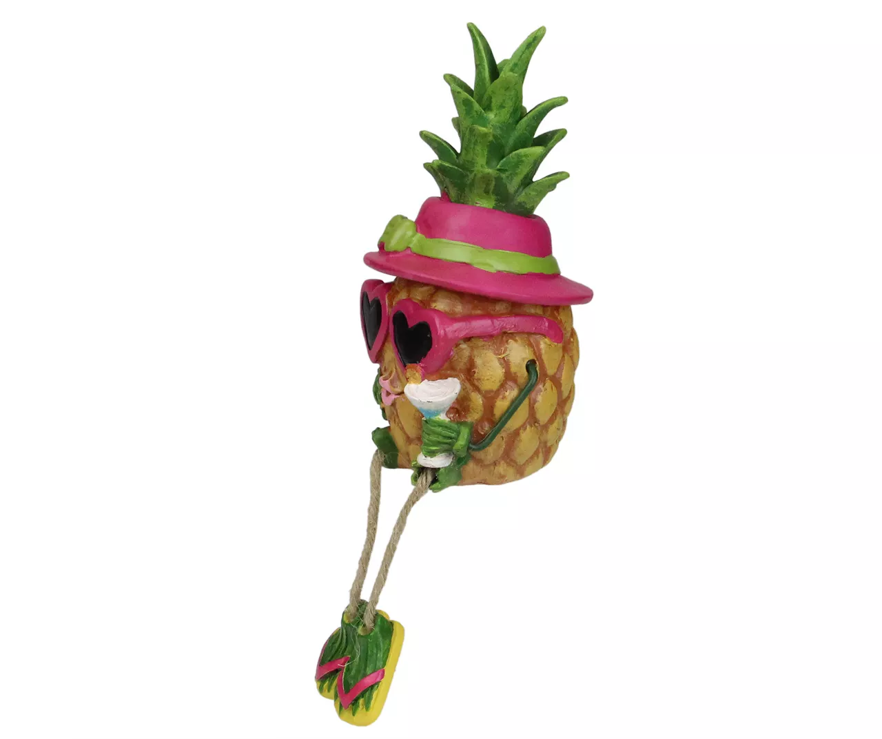 Add some sweetness to your home or garden dƩcor with this fruity figure! This festive pineapple is featured with a cocktail in hand and wears pink sunglasses. Perfect for perching on top of a garden stone, fireplace mantel or kitchen shelf.