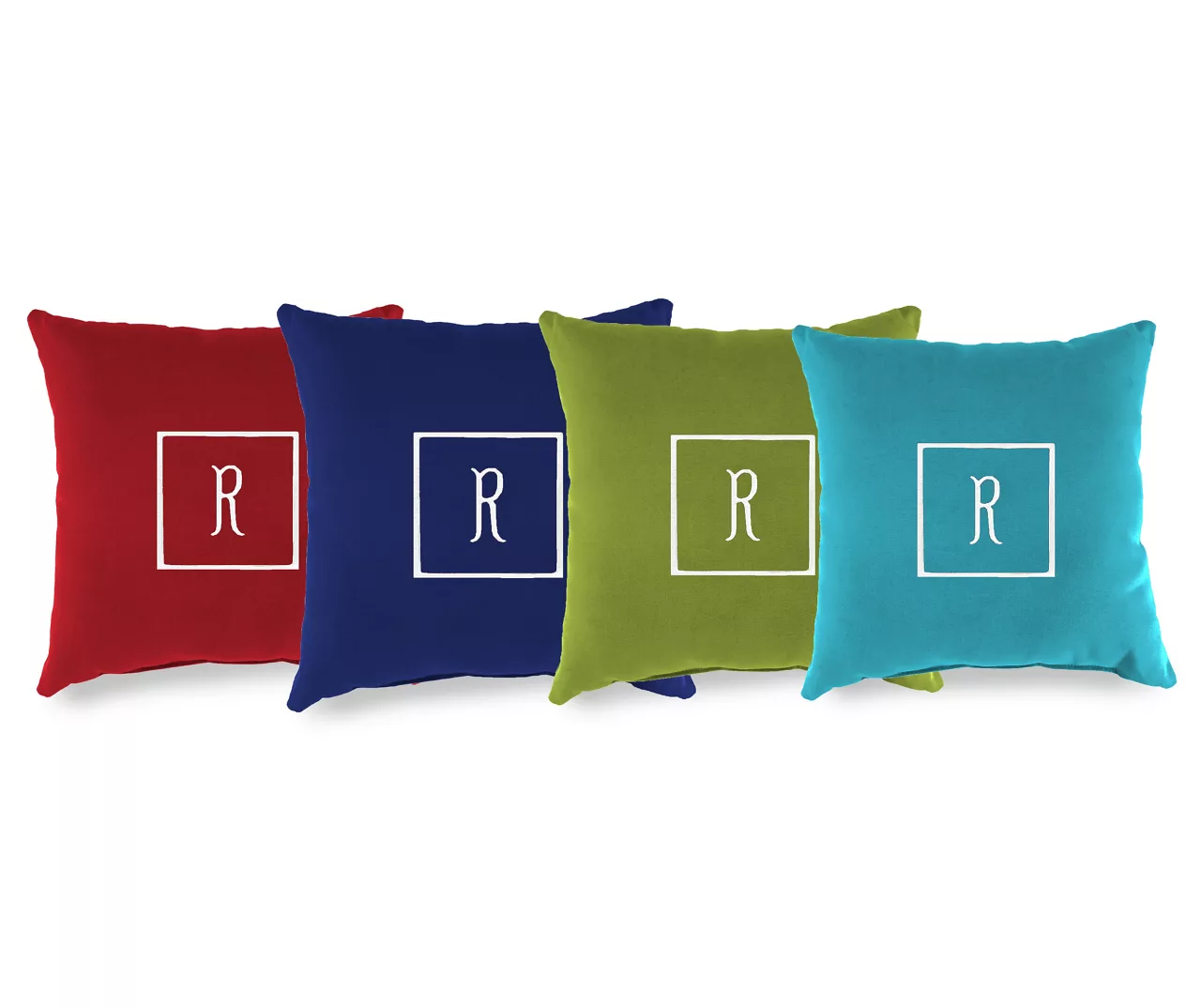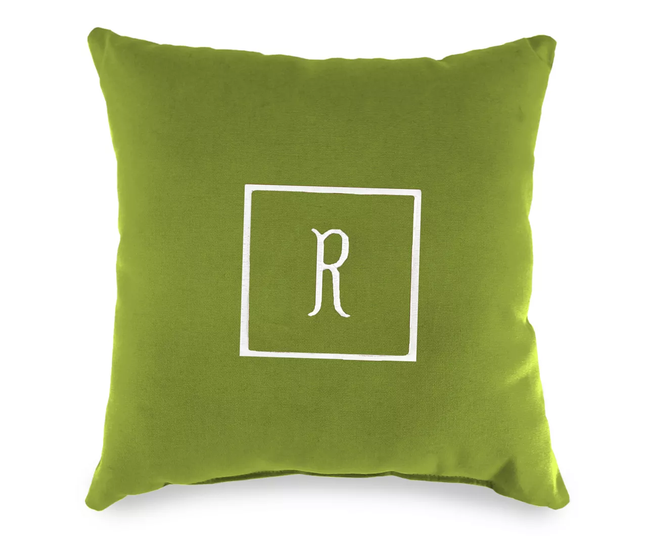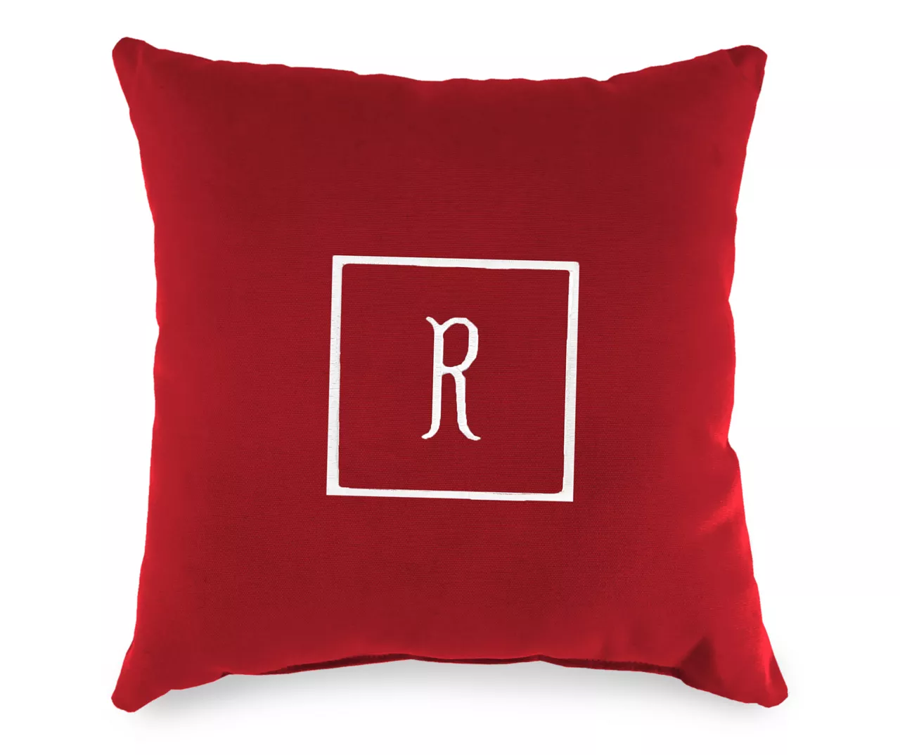 - Embroidered center letter with square edging