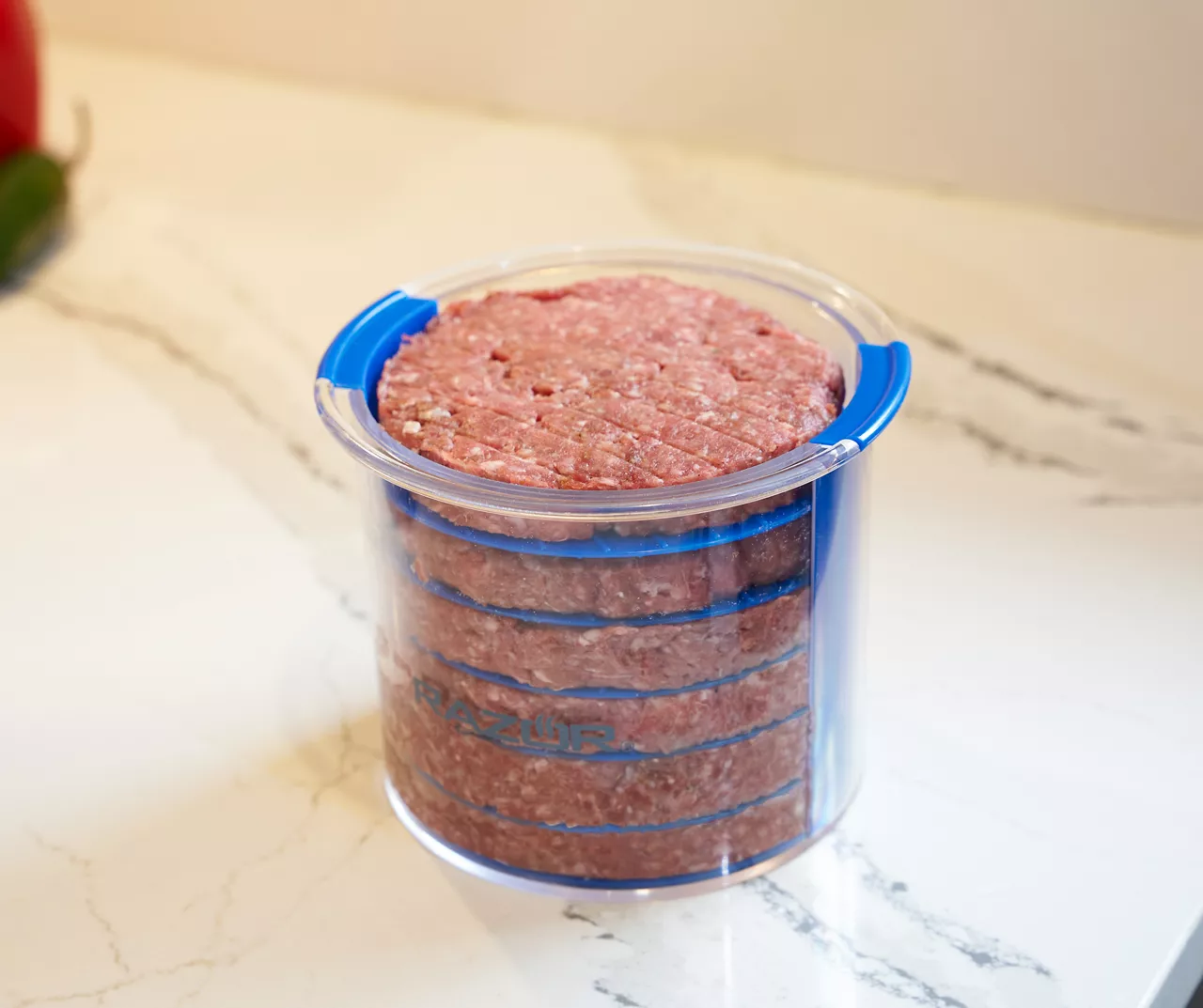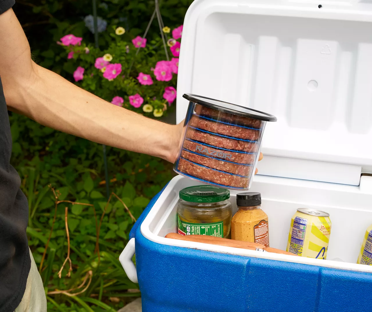 Create the perfect shaped patties on the go with the Razor burger press caddy. Simple to use – press to form, pull the tabs to remove patties and grill away! Set includes 12 pieces, giving plenty of space to make an abundance of patties to prep and store safely in the fridge. Perfect for on the go, tailgates, picnics and barbecues.