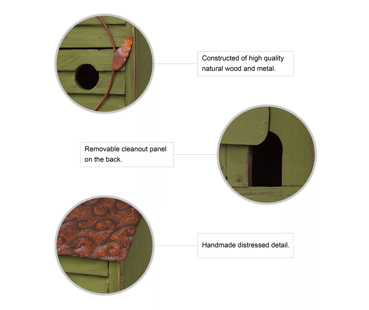 - Green cottage-style birdhouse