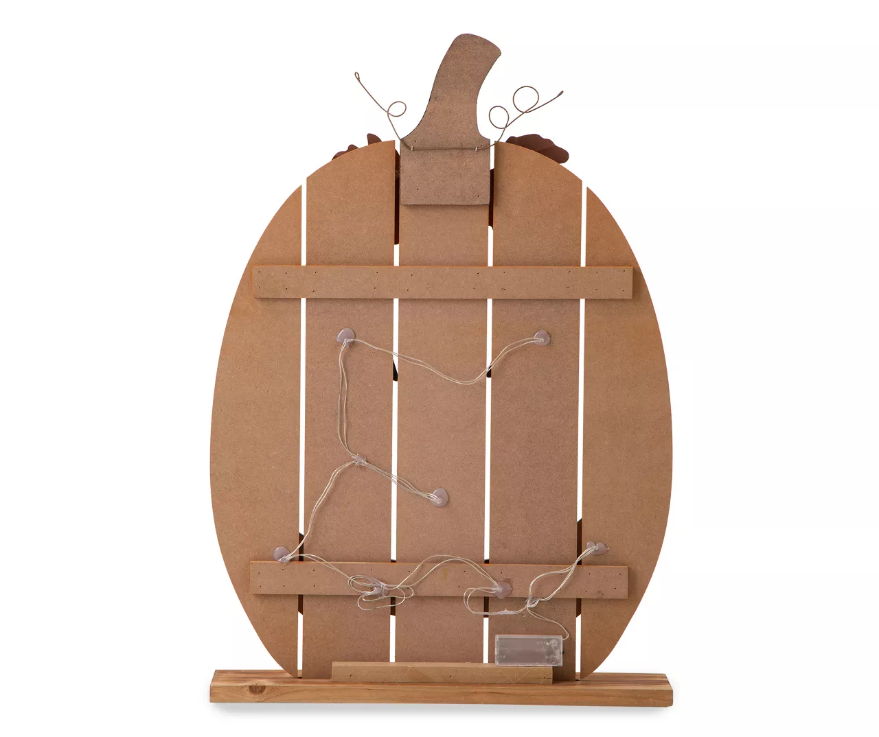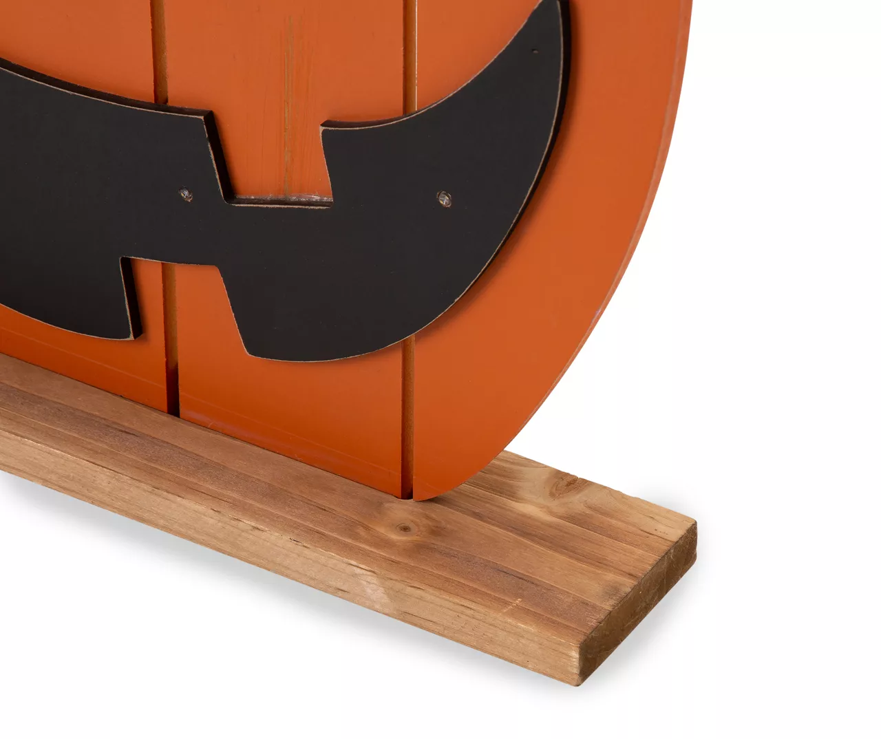 - Slatted wood Halloween jack o’lantern décor