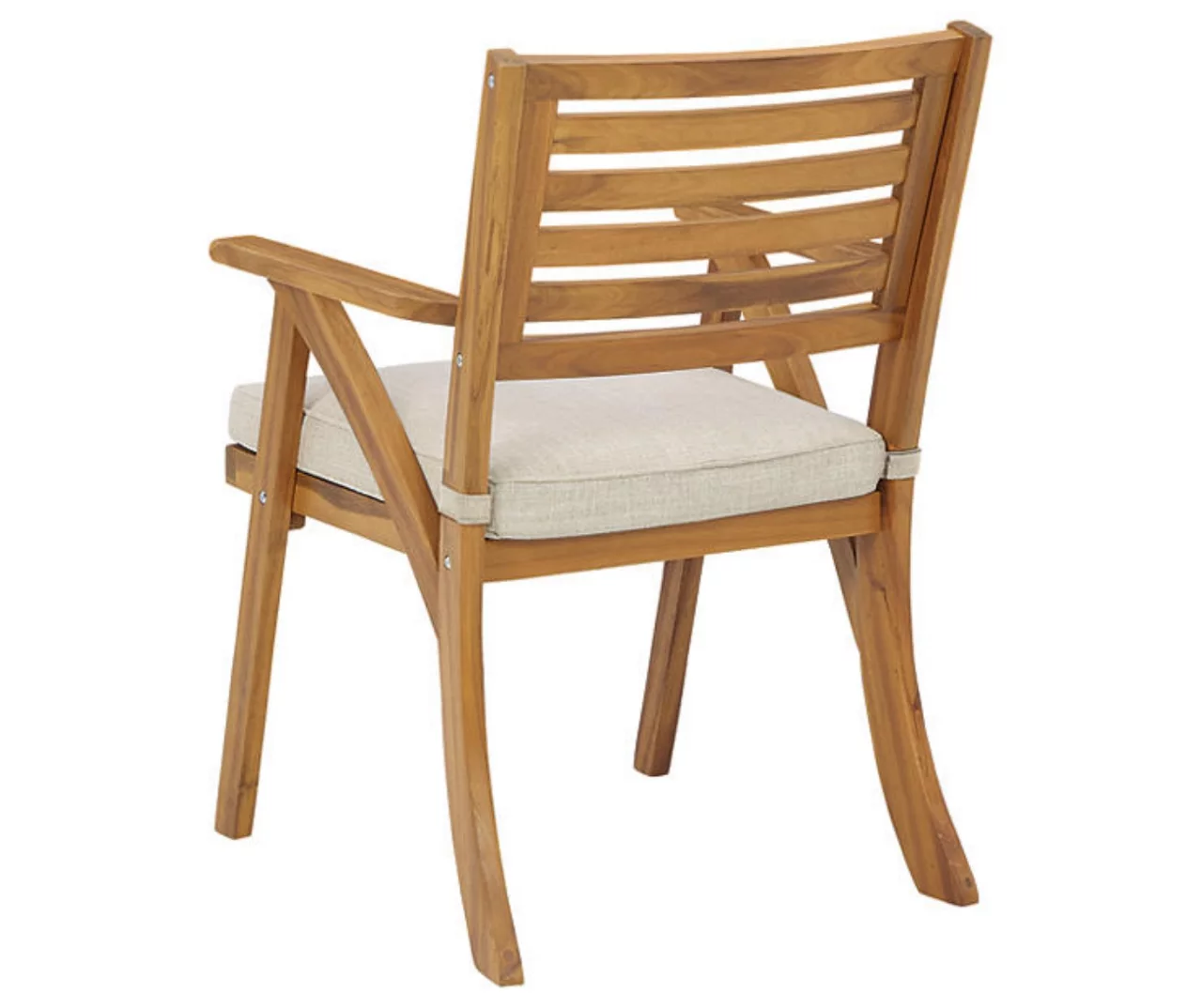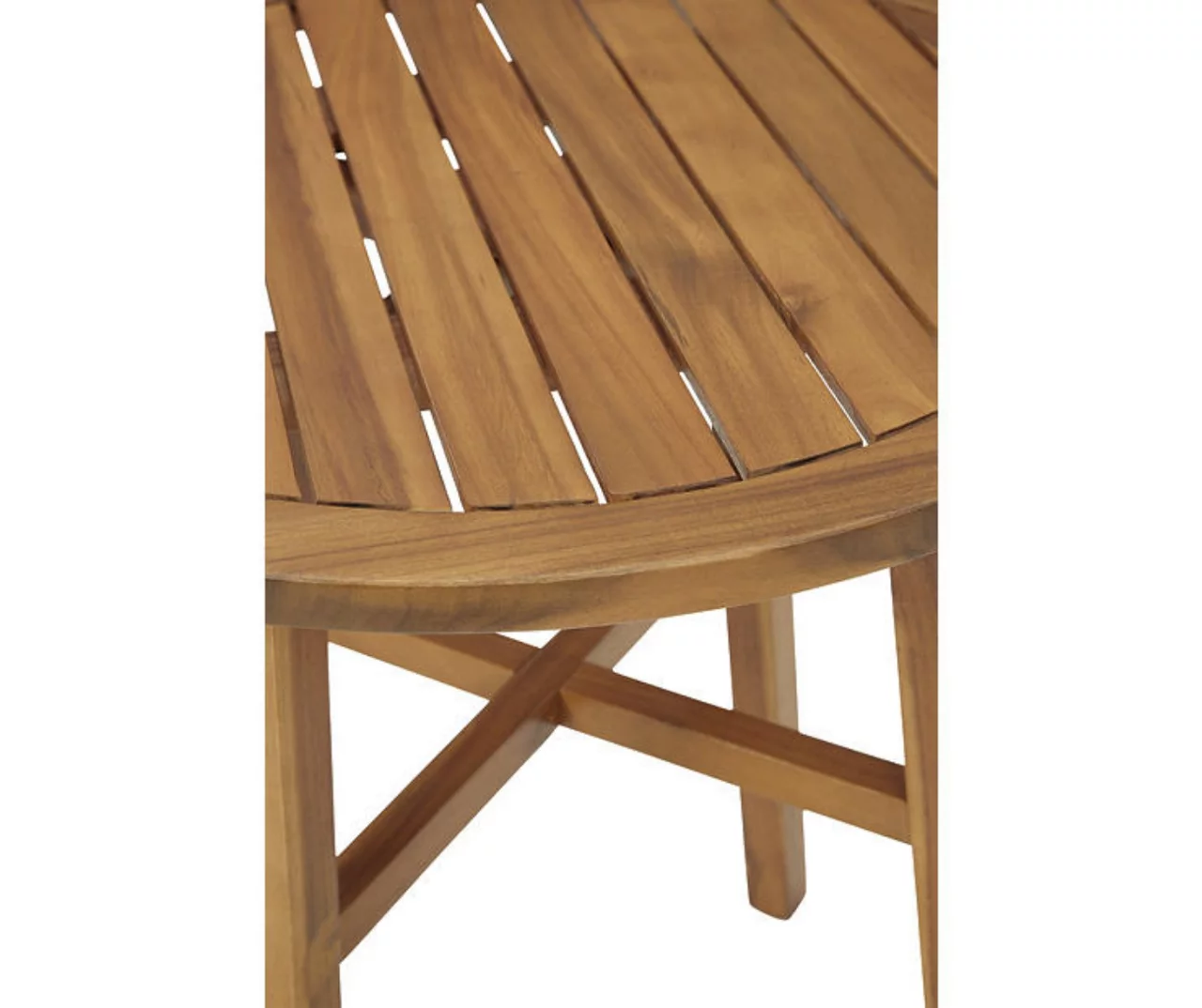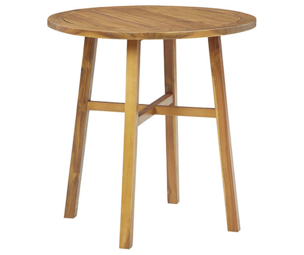 - Teak-tone acacia wood construction with slatted styling