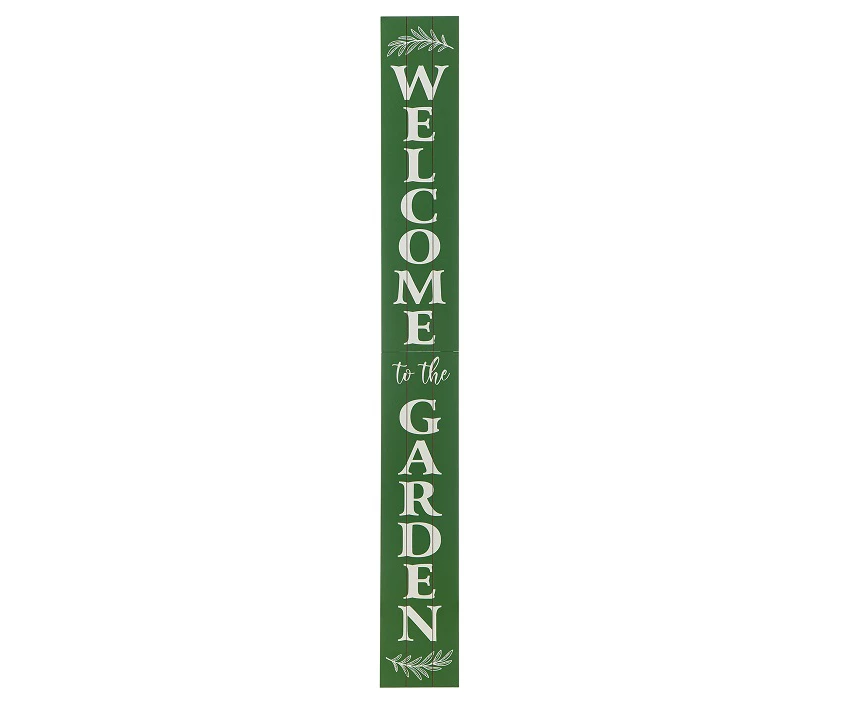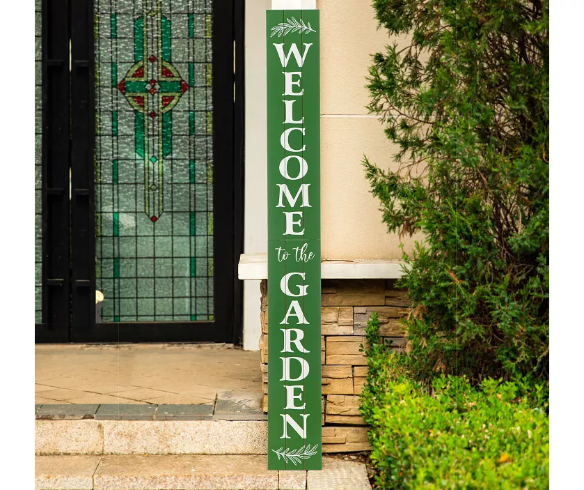 Enhance your porch or entryway with this oversized sign. The simple green background in a panel look features the phrase “welcome to the garden” written in white lettering. Display it against or on a wall for an eye-catching addition to your indoor or outdoor space.