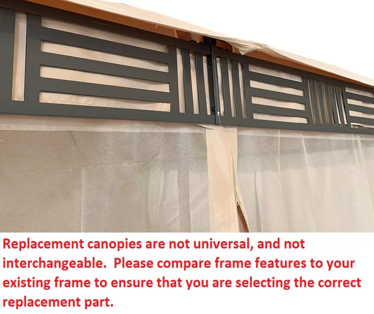 - This replacement canopy top cover will not fit any other gazebo model