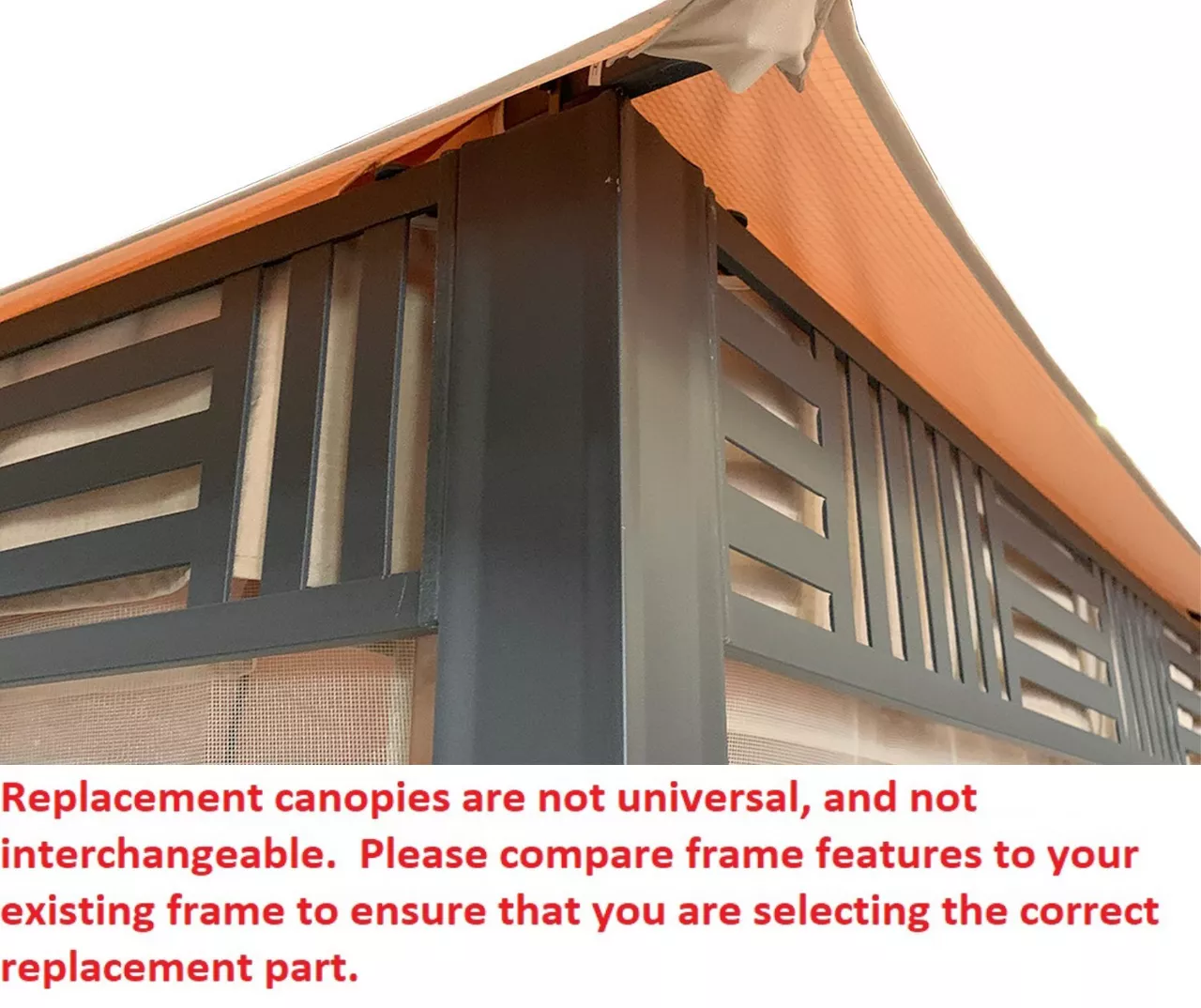 - This replacement canopy top cover will not fit any other gazebo model